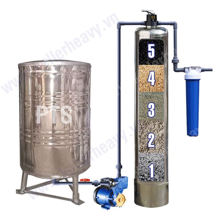 Bộ lọc nước tổng 1 cột inox giếng khoan loại bỏ kim loại nặng van cơ – LNGK04